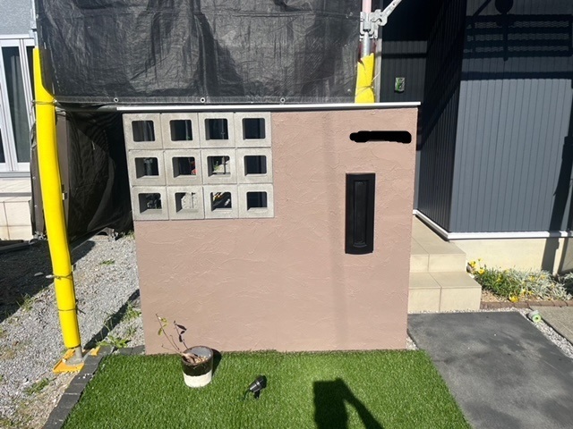 塀の塗装実施しました。外壁のポイント色と合わせております。あと1日しっかり手直しなど行えばいよいよ検査です。またアップします。