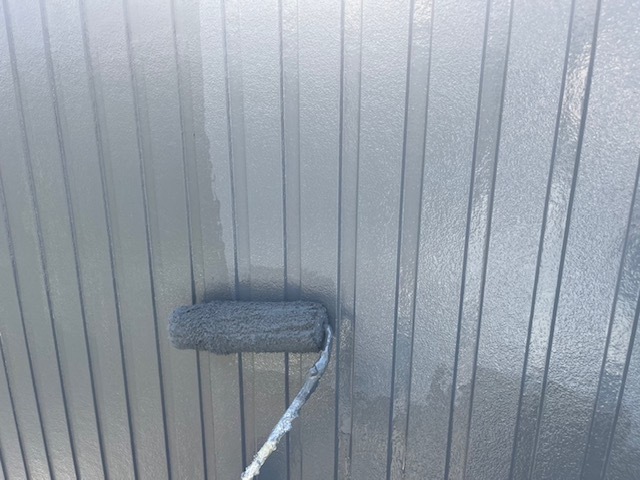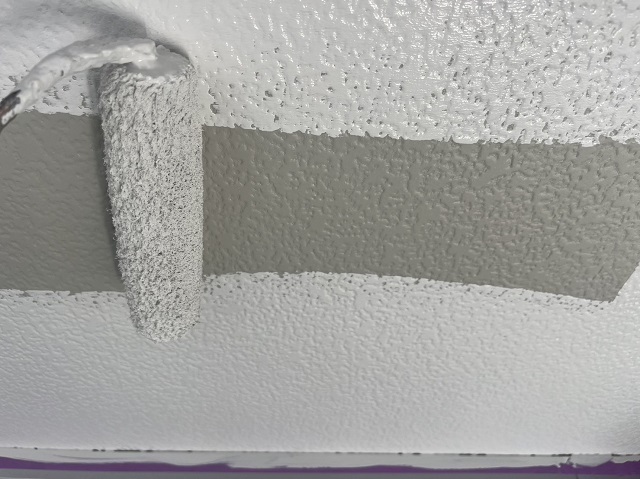 軒天の塗装や外壁の上塗りを進めております。今回は艶消しで進めております。