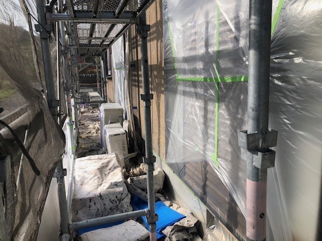養生作業完了です。明日から屋根のシーラーなど塗布して行きます。
