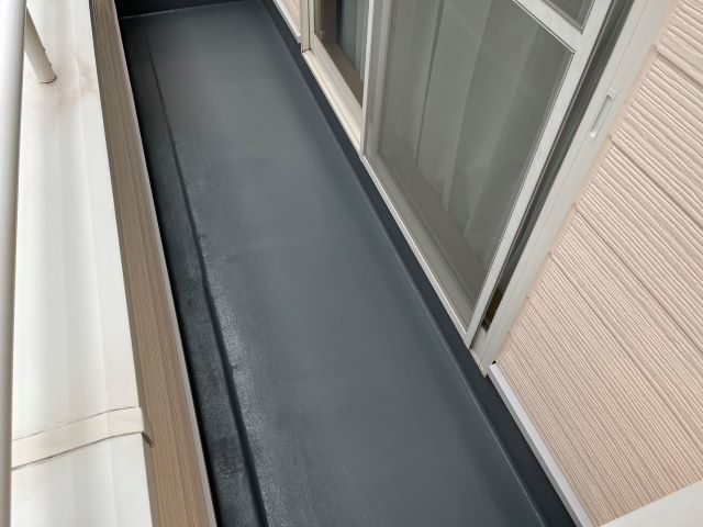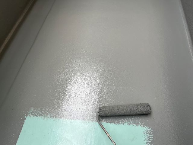 ウレタン防水の仕上げのトップコートです。乾いたらいよいよ足場解体です。またアップします。