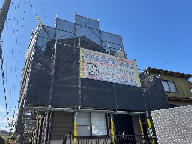 Tさま邸足場架設完了です。明日は高圧洗浄実施します。