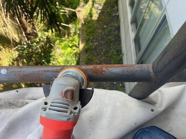 今日は手摺部分のケレンと錆止め+中塗りまで進めました。あと1日でKさまの橋の塗装も完成です。倉庫の方もタッチアップなども依頼されているのでまた完成したらアップします。