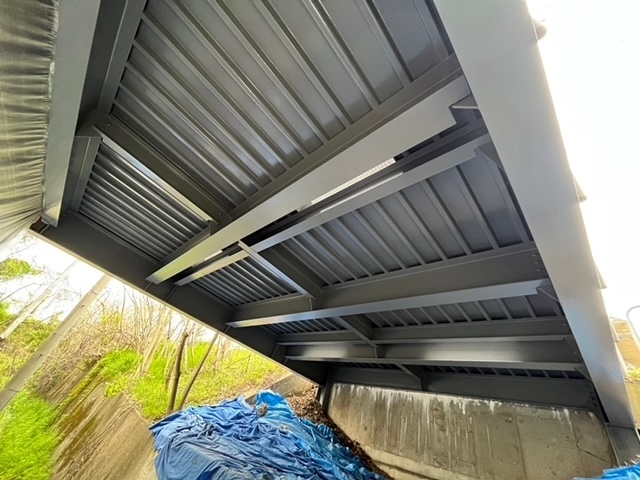 橋の裏面は上塗りまで完了しました。新品の鉄骨のように綺麗に仕上がっております。次の作業からは橋の上面や側面や手摺など塗装していきます。またアップします。