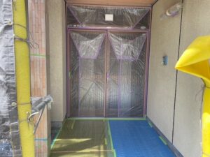 月曜日の足場の為にテラスの脱着工事を行いました。これで足場準備は完了です。