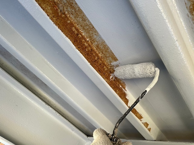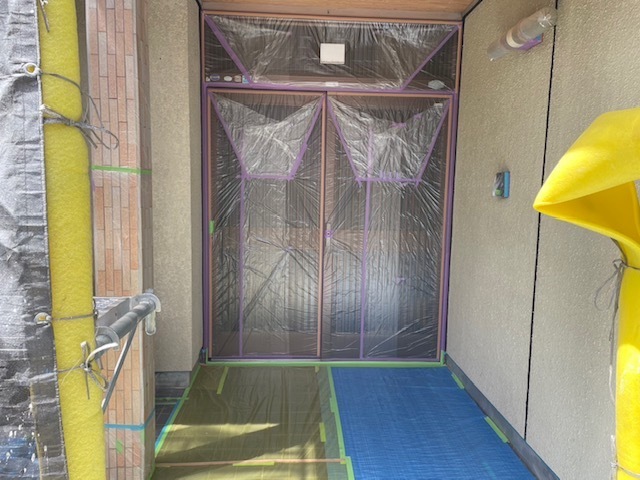 残っていた養生作業完了しました。今日は鉄部の錆止め塗布して終了です。明日も下塗り進めて行きます。またアップします。
