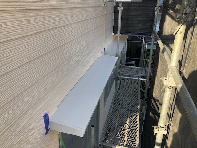 子庇やベランダ外側の色替え部分を塗装しました。濃いグレーでカッコ良いです^^明日はクリア塗装の部分を進めて行きます。またアップします。