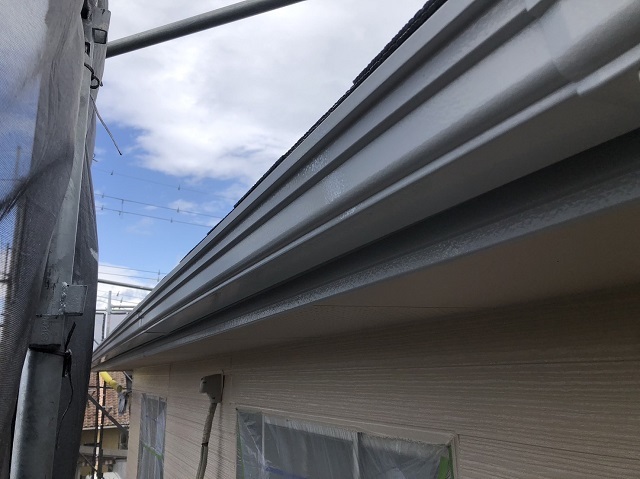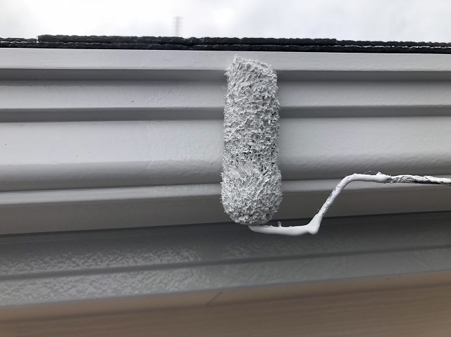 雨樋の塗装の様子です。午後から天気が怪しくなってきたので午前中で作業終了しました。明日は日曜日ですが天気良さそうなので作業進めます。またアップします。
