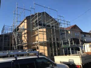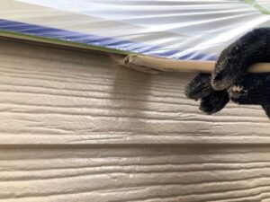 外壁上塗りの様子です。明日は雨で作業休みになりそうです。またアップします。