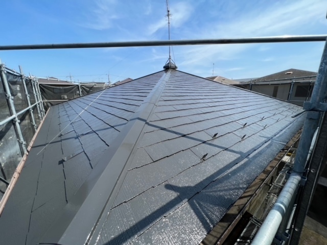 養生も終わって今日は屋根のシーラーを塗布しました。1回目塗布の様子です。明日は他現場の仕上げがあるので作業有りませんがまた明後日から進めて行きます。また進みましたらアップします。