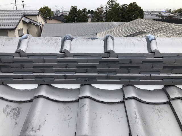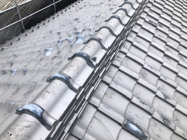コーキングで瓦がずれないようにシールド工事をさせて頂きました。せっかくなので紐丸部分もサービスでコーキングでシールドしました。職人が頑張って進めてくれているので月曜日には完成予定です。またアップします。