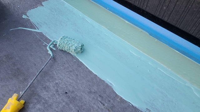 防水工事の様子です。明日の雨が降る前にウレタンだけでも流させて良かったです。次はトップコート塗布の工程です。またアップします。