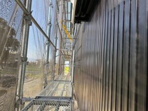 今日は手直しなど行い最後に屋根のボルト部分にキャップしていきました。明日はエアコン交換がありその次の日に足場解体となります。解体後も下屋根など塗装入って行きます。