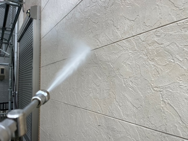 高圧洗浄実施しました。明日は天気次第になりますがコーキング工事を進める予定です。