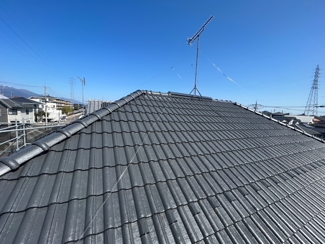 屋根の上塗り完了です。ファインパーフェクトベストで4回塗りしました。(ファインパーフェクトベスト強化シーラー2回)で仕上げております。吸い込みもなく綺麗な仕上がりです。またアップします。