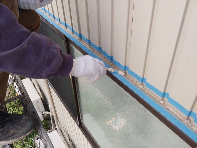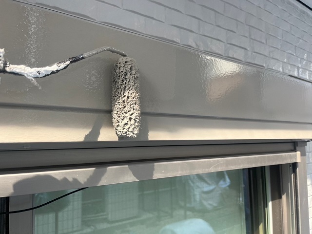 シャッターボックスの塗装の様子です。サッシ色と合わせるのが非常に難しく職人さんの腕の見せ所です。Nさま邸もそうですがシャッターボックスの色と水切りの色を同じにされるお客様が多いです。またアップします。