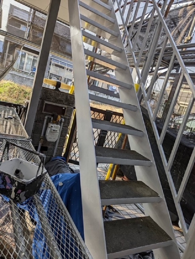 今日は鉄骨や鉄の階段など塗装進めました。もう少ししたら他の現場も終わってくるので人数投入して大きく進めます。またアップします。