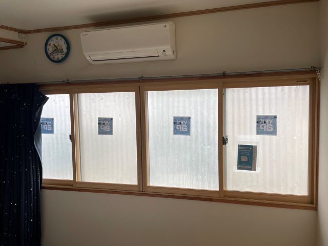 内窓工事実施しました。全部で7箇所工事済です。寝室、リビング、洗面所、お風呂、2F洋室3箇所の計7箇所です。数年前に大規模リフォームさせて頂きましたお客様からのリピート工事です。前回工事に満足して頂けて無かったらお声は掛からないと思いますので嬉しかったです。