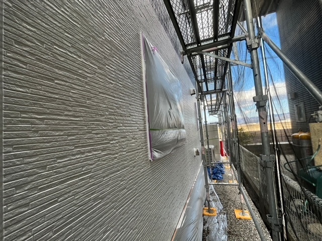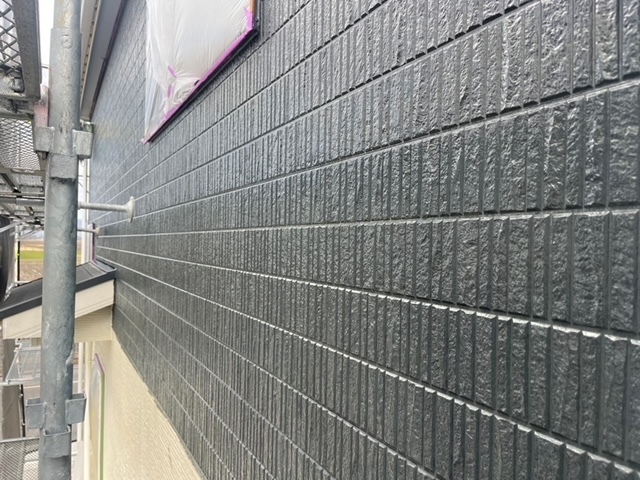 外壁の中塗り完了です。白と黒のコントラストでかっこ良く仕上がりそうです。明日は上塗り進めて行くようです。またアップします。