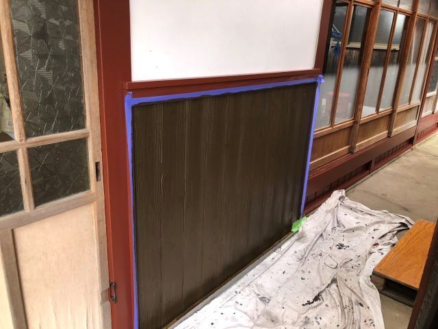 あ今日は焼板部分をガードラックで塗装していきました。来週から大工さんが戸袋製作するのでその部分も後日ベンガラで塗装していきます。雨樋交換も実施済です。105から120のサイズに軒樋変更しました。