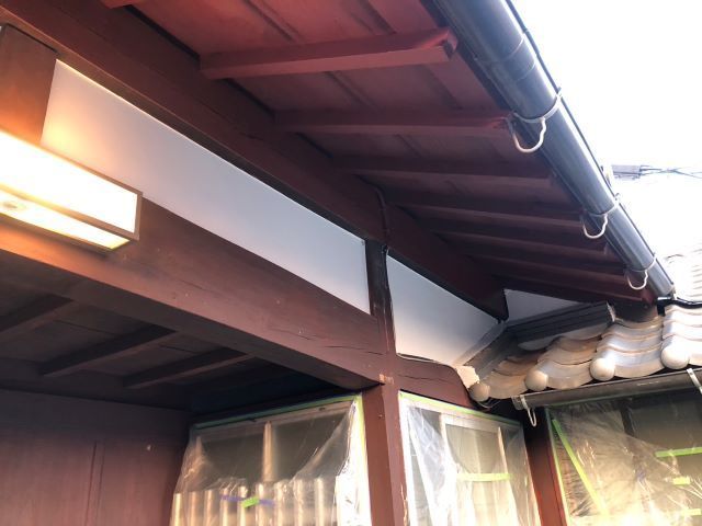 今日はケンエースで白壁の塗装を進めました。ベンガラと白壁の色の相性は本当に良く綺麗です。