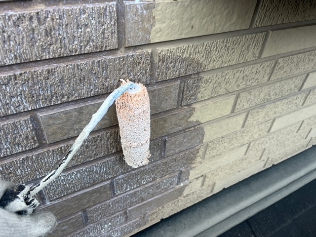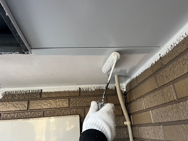 外壁のシーラーの塗装と軒天の塗装進めました。朝から2名で養生作業からスタートしてシーラーは完了しました。軒天は少しだけ触れただけですが順調に進みました。