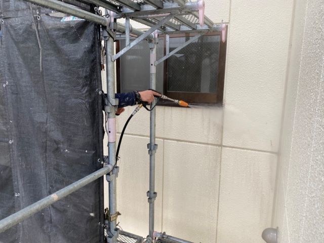 これは月曜日の作業風景ですが洗浄作業を行いました。今日はコーキングのマスキングなど実施しました。写真は撮影できなかったので後日アップします。