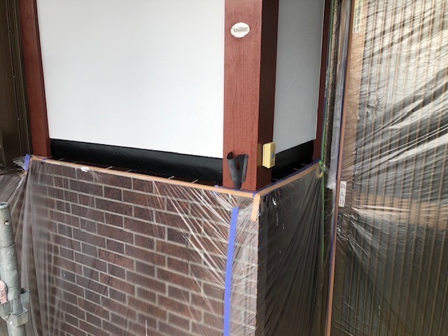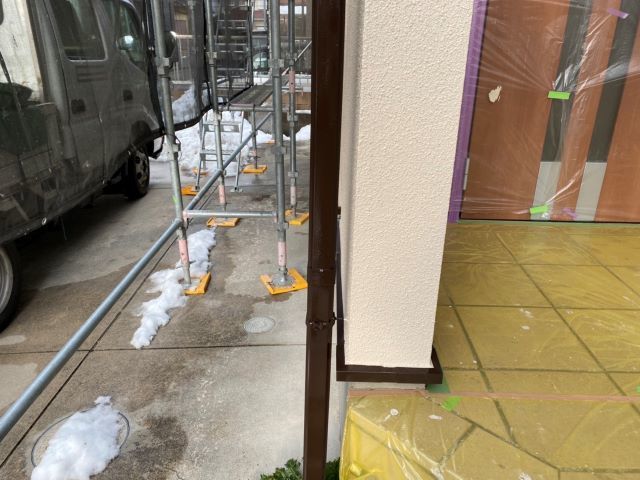 外壁の上塗り完了です。今日から細かな茶系の塗装に入って行きます。