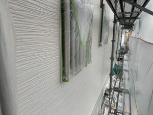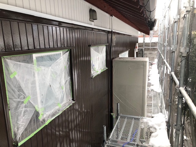 雪の影響でしばらく作業できませんでしたが本日再開しました。上塗り途中まで進めております。