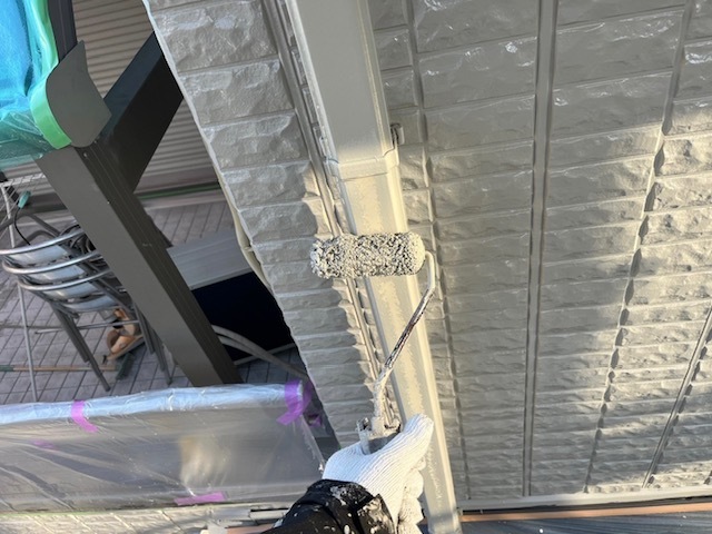昨日、外壁が終わったので今日から付帯部の塗装に入っております。写真は1回目の塗装の様子です。付帯部は2度塗りです。明日も引き続き付帯部塗装します。