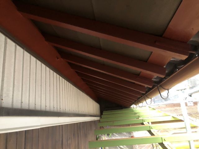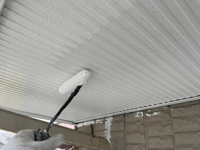 雨が降ったり止んだりで天気が安定しなかったので今日は軒天の塗装進めました。