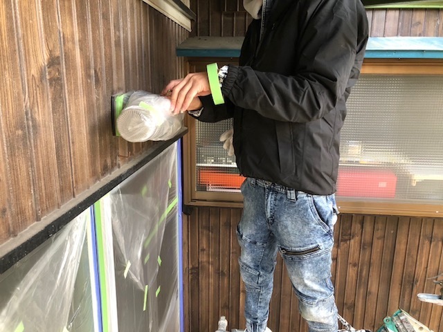 大きなお家なので養生作業だけでも結構時間かかりますが養生は仕上がりに影響しますのでしっかり丁寧に行います。