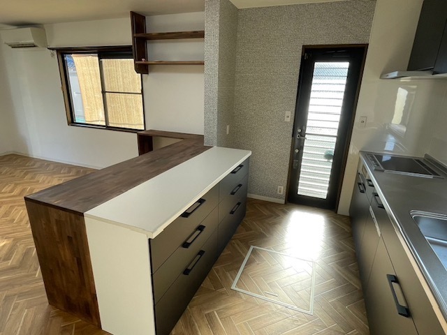 食事をするカウンターも大工さんの手作りでオスモ塗装で仕上げてます。