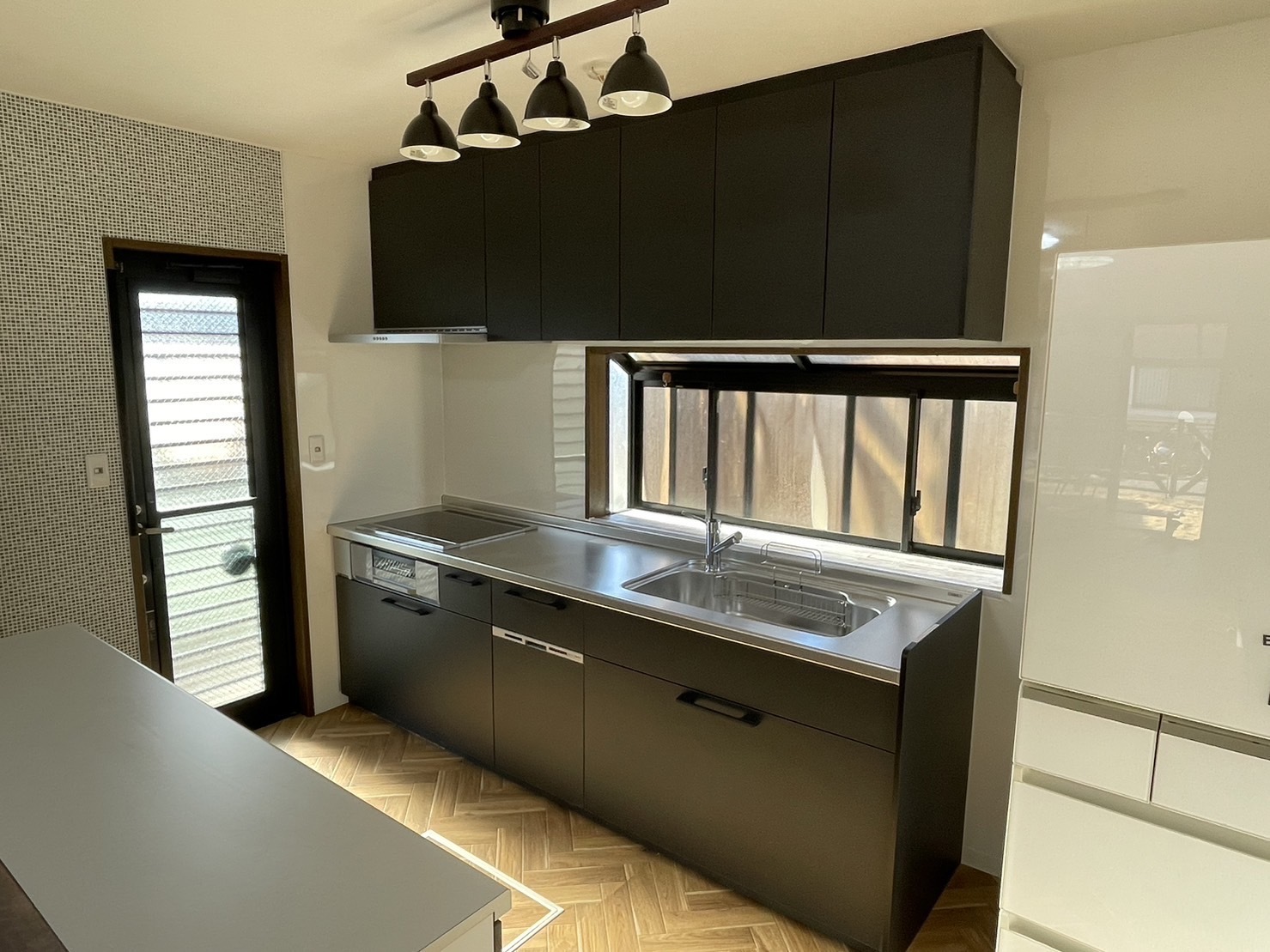 キッチンも艶消しのブラックですごいオシャレでカッコ良いです。
