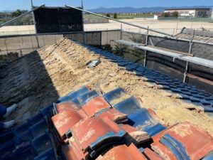 台風養生していたのでそれの撤去と瓦を葺く作業の続きしました。