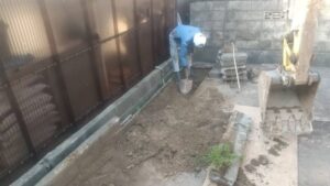 塀の吹付け塗装の様子です。