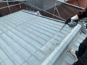 その後、塀と下屋根の塗装、ベランダの防水工事に入って行きます。