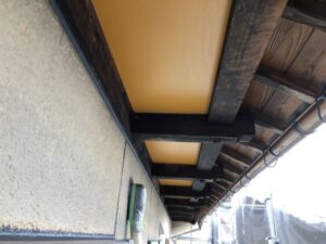 軒天の塗装の様子です。