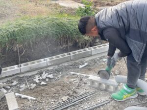 今日は型枠工事やレンガ積みフェンスの柱設置を行いました。