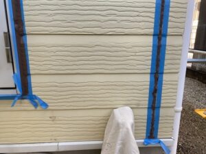 セラミックの吹きつけの改修工事なので表面がガタガタしておりコーキング屋さんも苦戦しておりました。