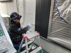 先週中塗りまで進んでおりますKさま邸、本日細かな部分の刷毛を取り上塗りしました。