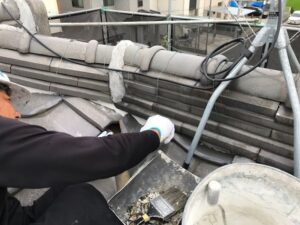 旧塗膜がセラミック吹き付けなのでシーラー+フィラーの下処理になります。