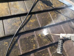 お家から1m以内くらいにこのようにカーポートやテラスがある場合は足場架設の障害になるので足場架設前に取り外して足場解体後に復旧します。