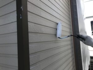 明日から外壁の中塗り作業、軒裏の塗装に入ります。