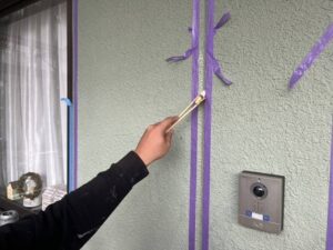 今日は風が非常に強く上塗り作業は中止し細かい刷毛を取りました。