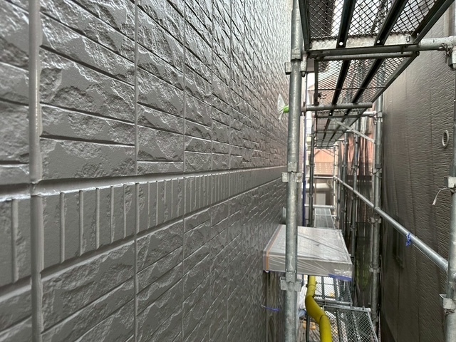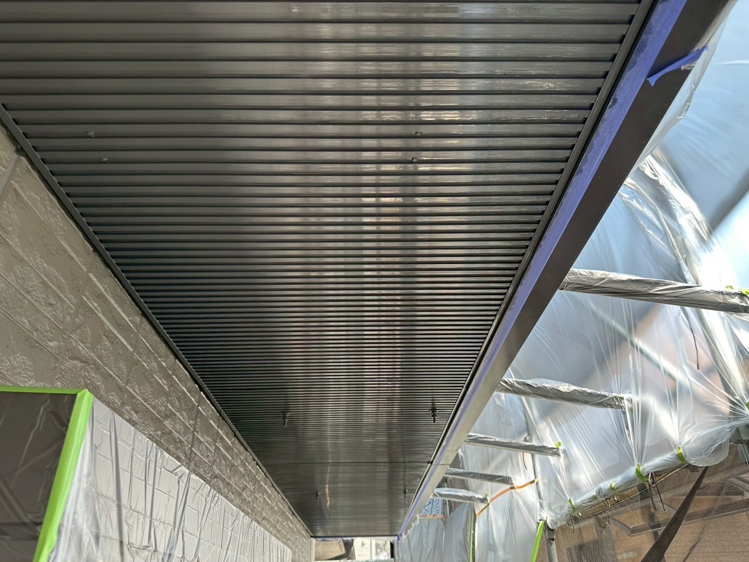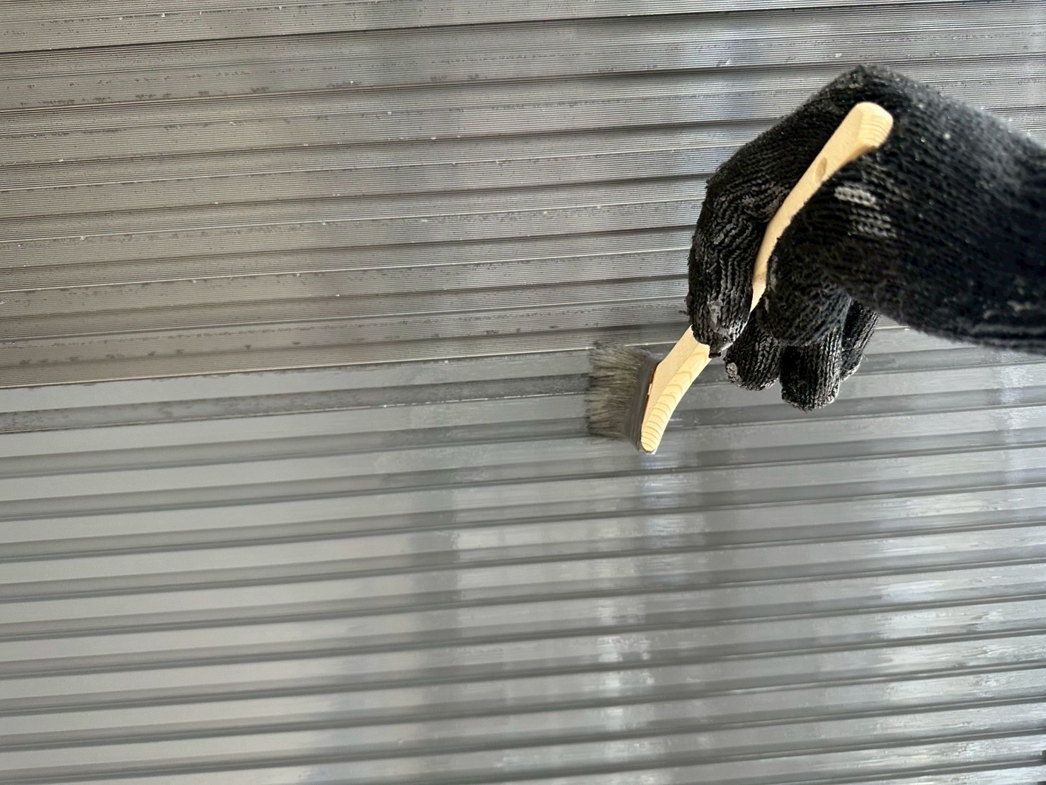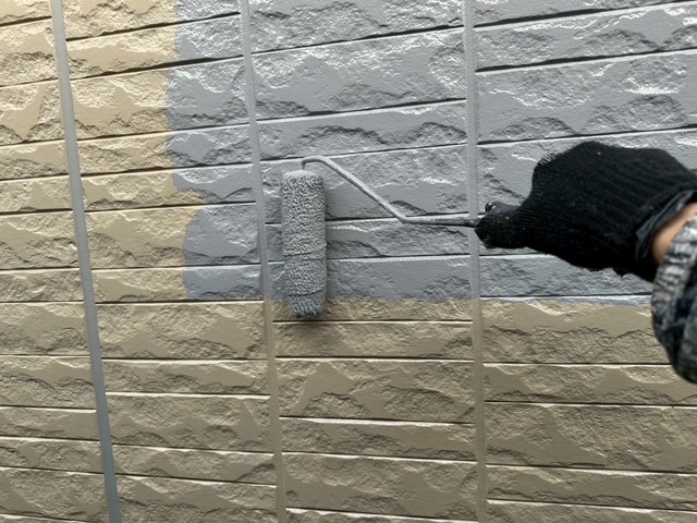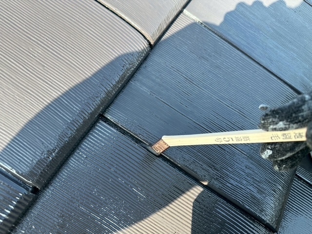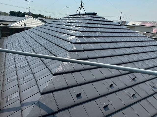 本日は屋根のスレート瓦のジョイント部を刷毛取りをしてから上塗り4回目仕上げをしました。後は、ベランダの軒天井や外壁の中塗りを少ししました。明日も引き続き宜しくお願いしますね(^^)