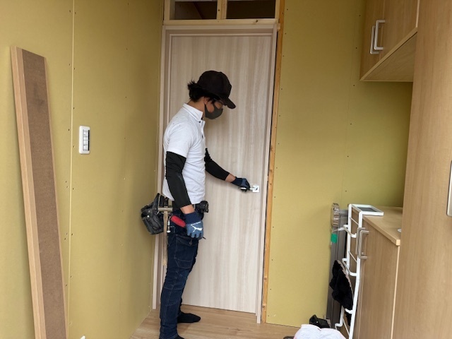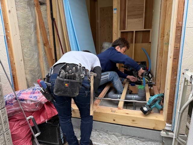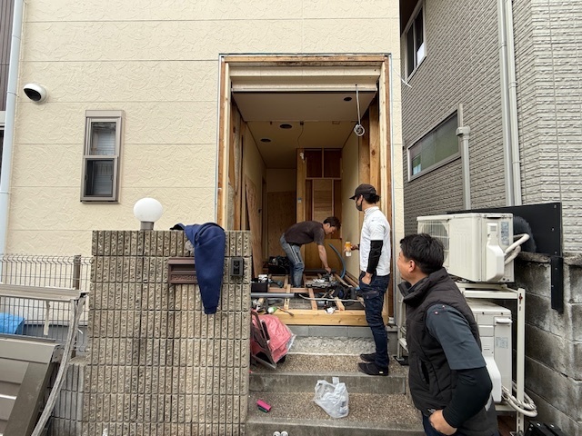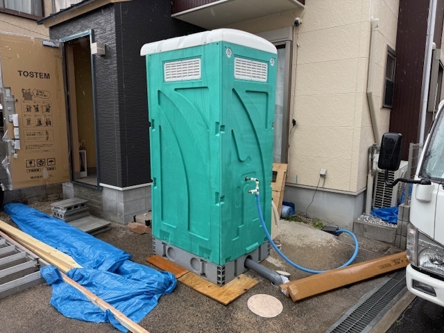 本日の作業は仮設トイレ設置と旧玄関の解体工事と旧トイレの解体工事と新玄関とリビングの間の建具も届きましたので設置させていただきました。今日から1週間だけトイレが使用できなくなりますので仮設トイレを設置しました。なるべく不便なくご使用いただけるように水洗トイレを設置済みです。旧玄関と旧トイレの解体工事も進み新トイレの配管の仕込み工事も順調に進んでおります。明日から大工さんメインで内部の造作に入っていきます。引き続きよろしくお願いいたします。またアップします。