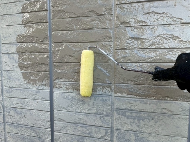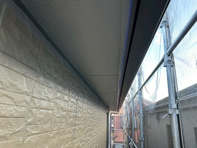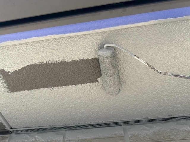 本日の作業は、外壁と軒天井をファインパーフェクトシーラーで下塗りを終わらせてから軒天井だけ中塗りまで出来ました。使った色は、パーフェクトトップSiのN-55を使いました。明日も引き続き宜しくお願いしますね(^^)