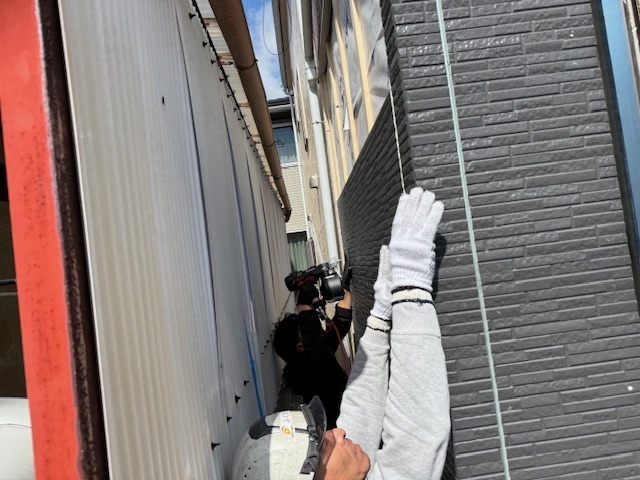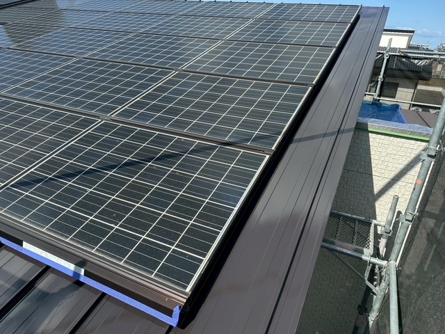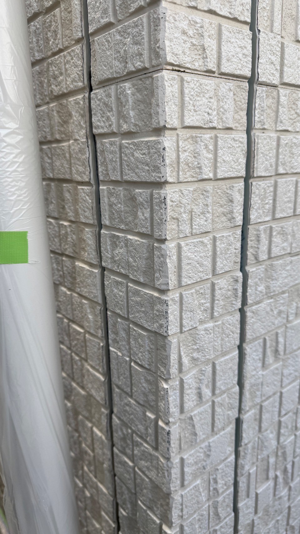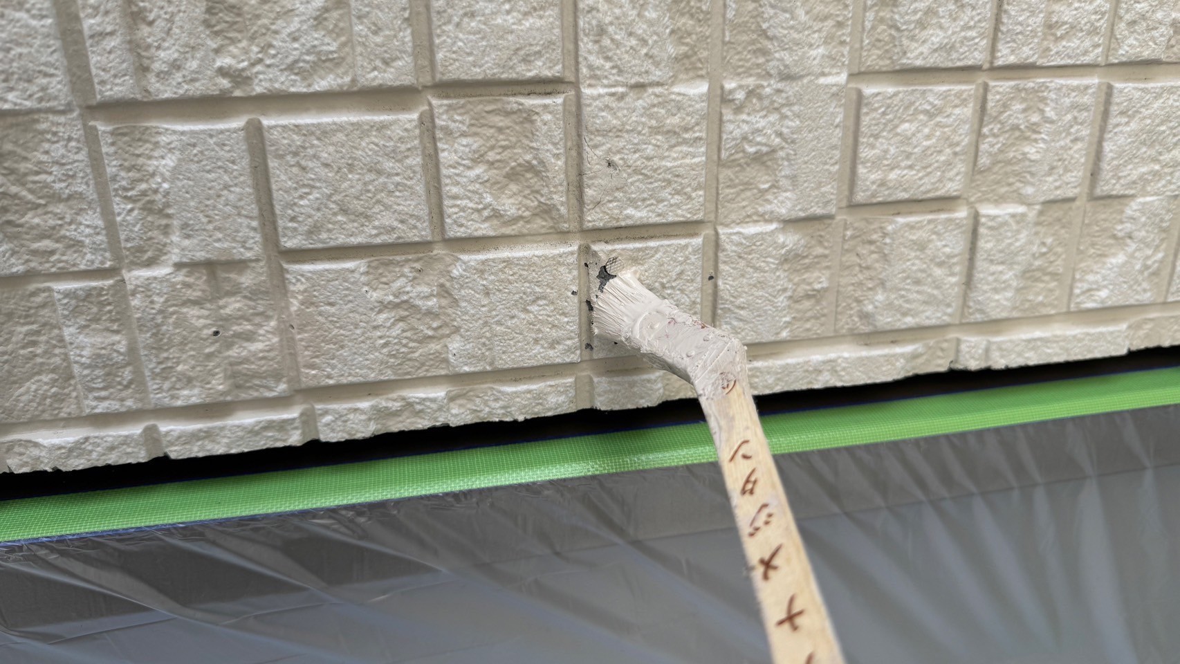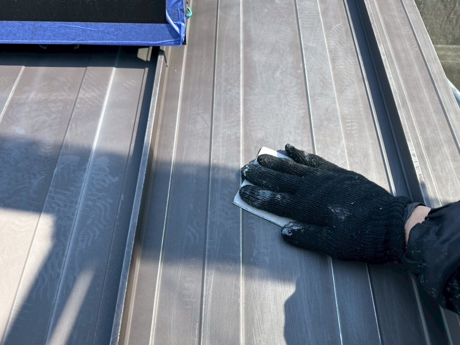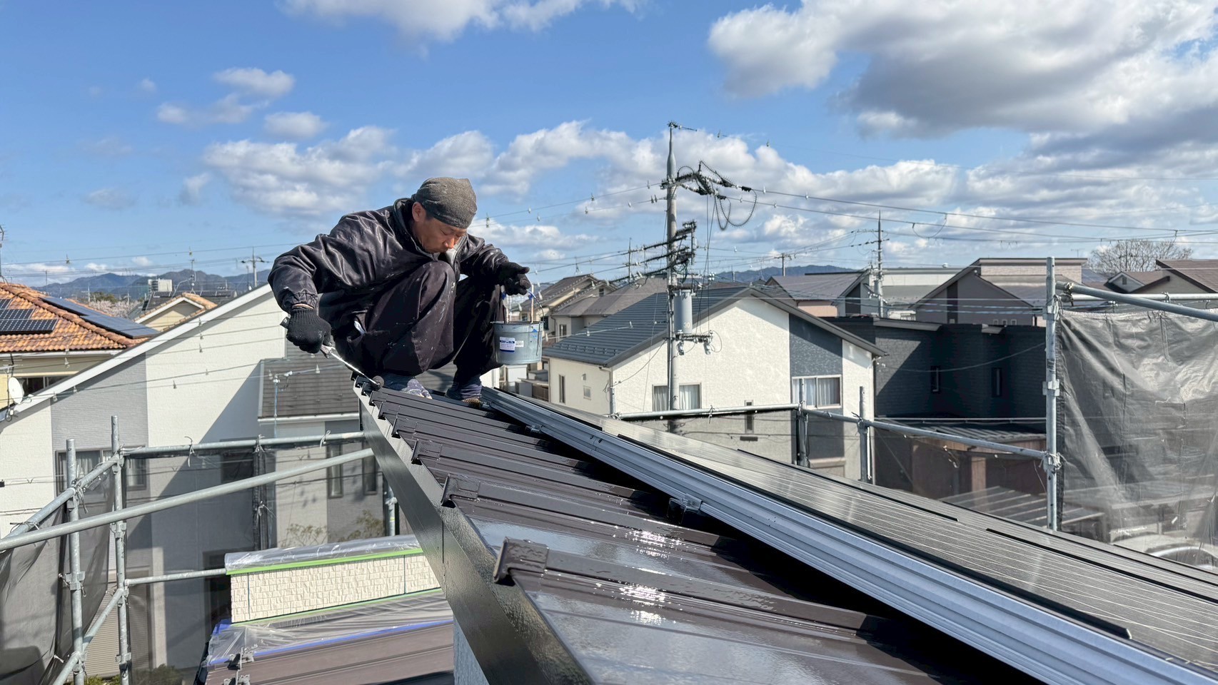 本日の作業は、2階の金属屋根の錆止めハイポンルーフデクロで下塗りをしてから1液ファインDFチョコレートNで中塗り上塗り仕上げをしました。明日からUVプロテクトDFクリアーで外壁を塗っていくのに今日は、外壁全体のメクレや色褪せ、シミ跡等をタッチアップしました。明日も引き続き宜しくお願いしますね(^^)