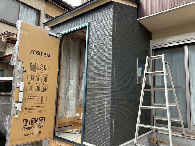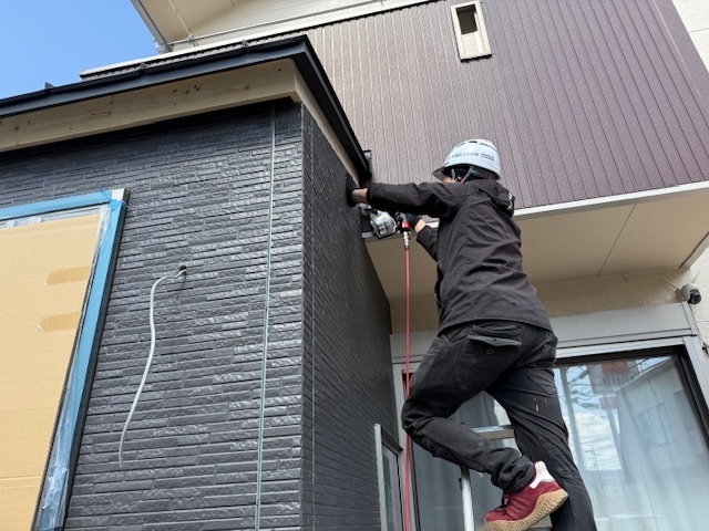 本日の工事はサイディング張り工事を進めました。内部の下地も同時進行で進めております。素敵な柄のサイディングです。外壁が出来上がると形がだんだん見えてきました。来週はコーキング工事といよいよリビングと連結もさせていきます。引き続きよろしくお願いいたします。またアップします。