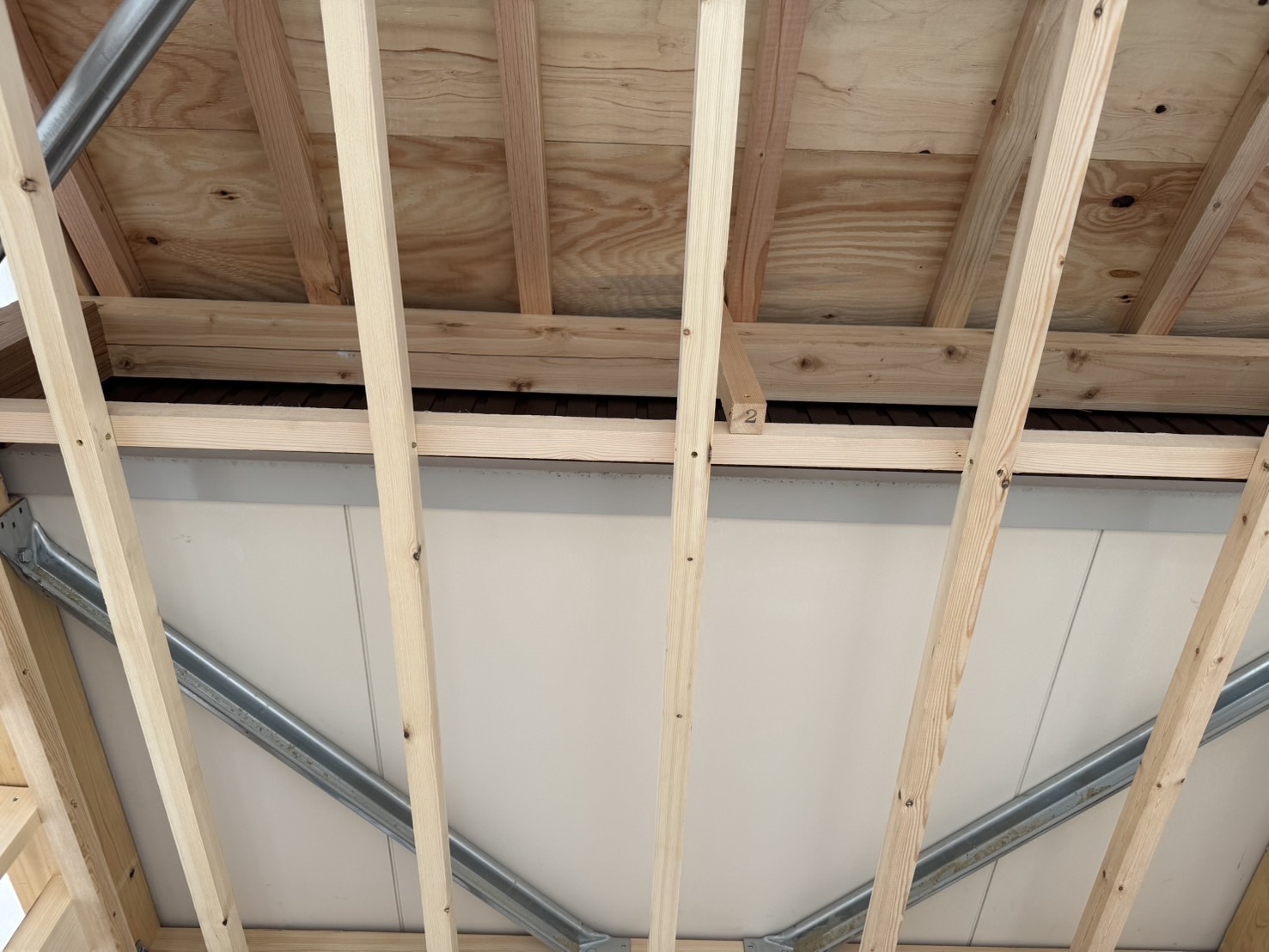 本日の作業は屋根のルーフィング工事と内部下地工事を行いました。明日は断熱材を入れていく予定です。引き続きよろしくお願いいたします。またアップします。